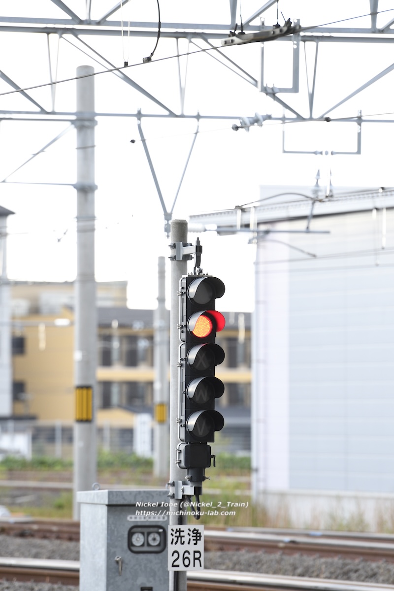 洗浄線の入換信号機。洗浄機に向かう場合は「V」も併せて点灯する。